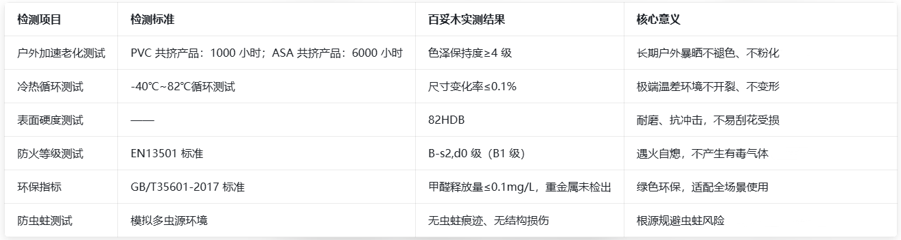 二、百妥木塑木凉亭:核心技术与严苛检测双保障